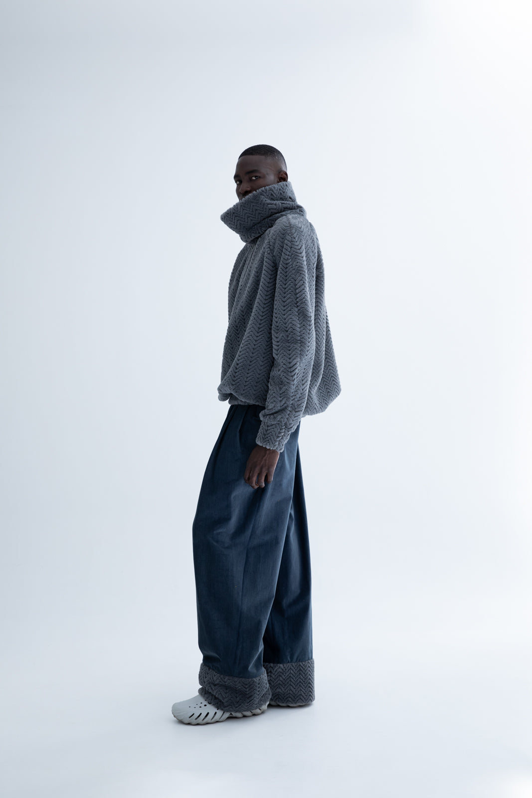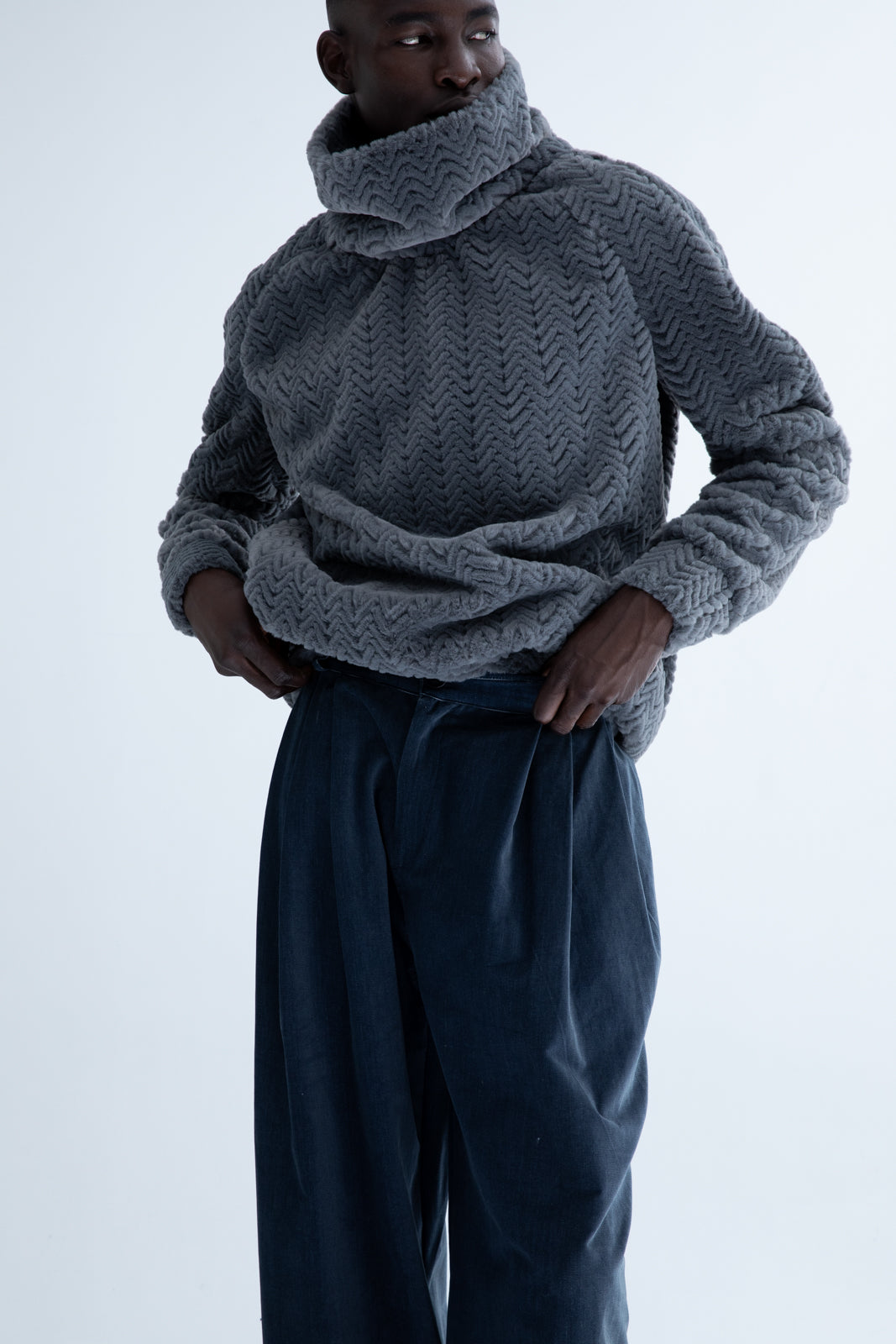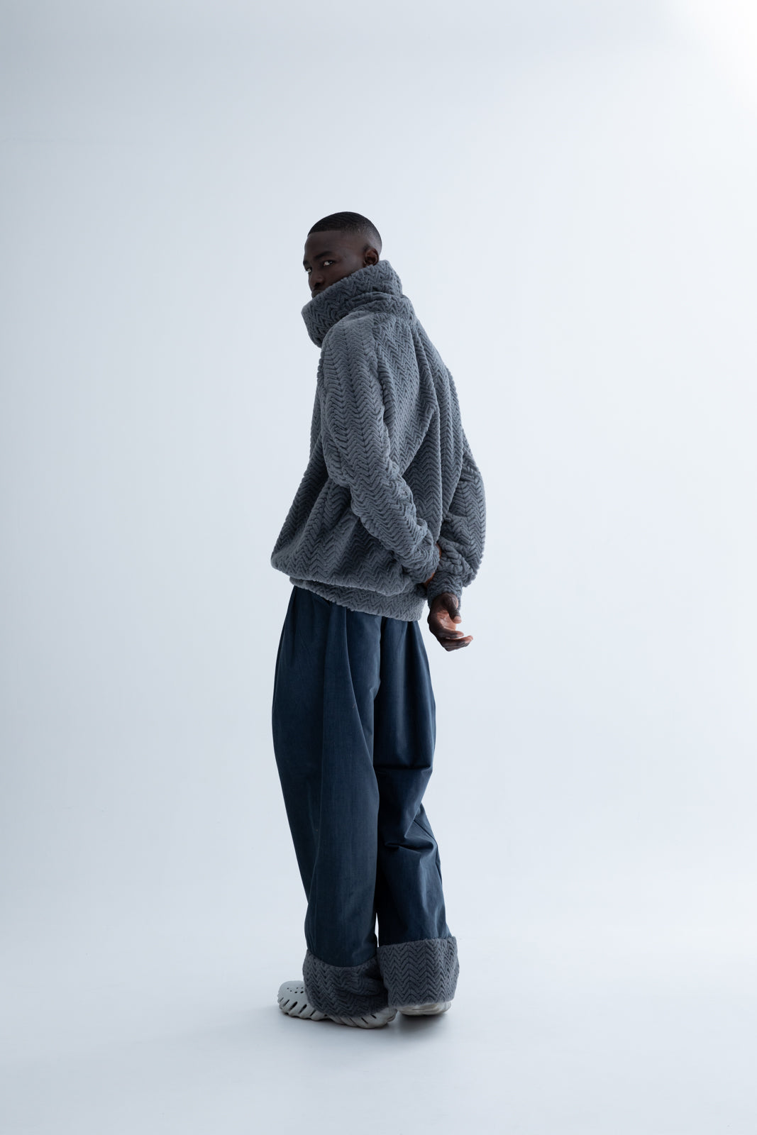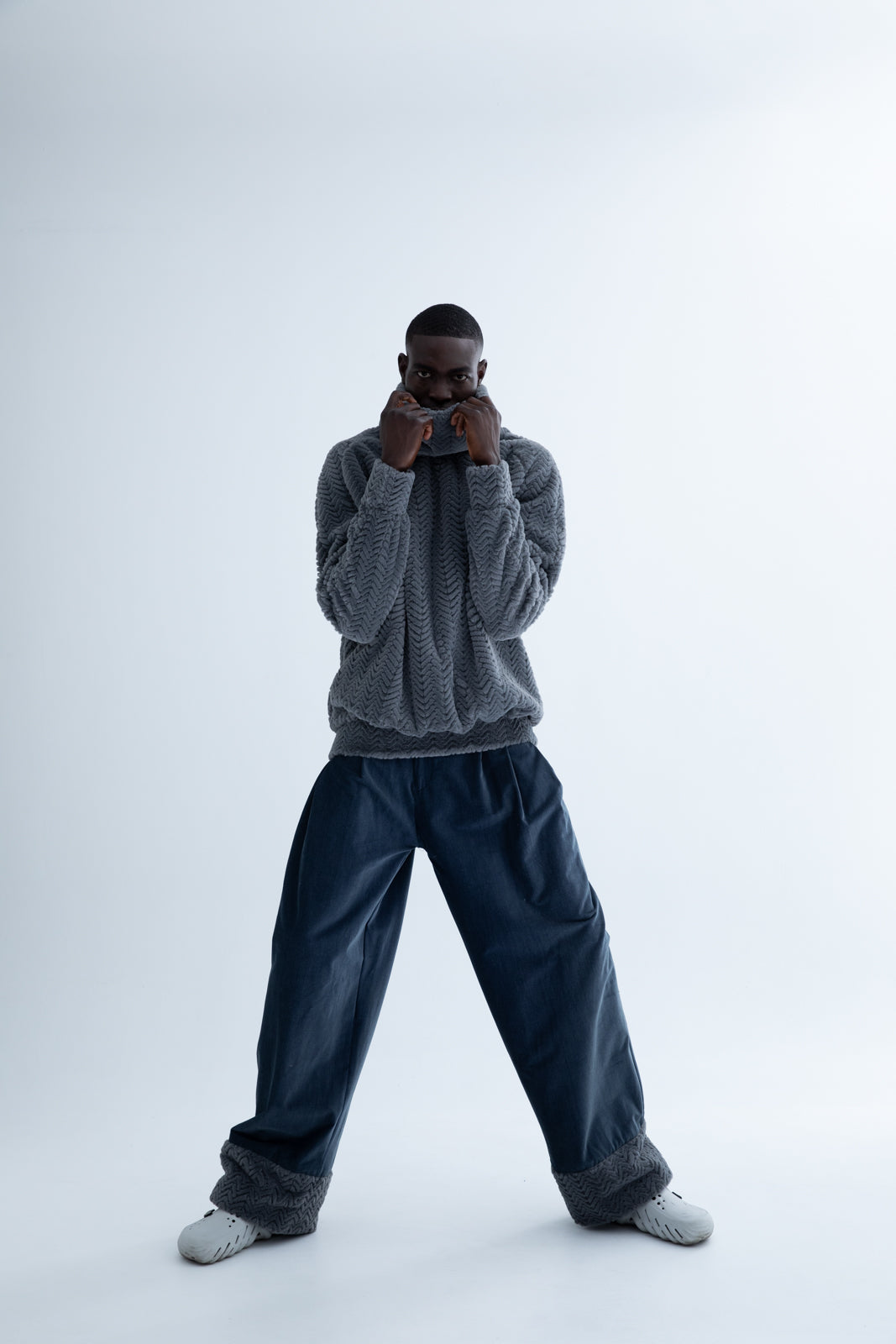Introducing our men's loose-fit jeans with faux fur trim at the ends—a perfect blend of style and comfort. These jeans provide a relaxed, comfortable fit while adding a touch of luxury with the faux fur detail.