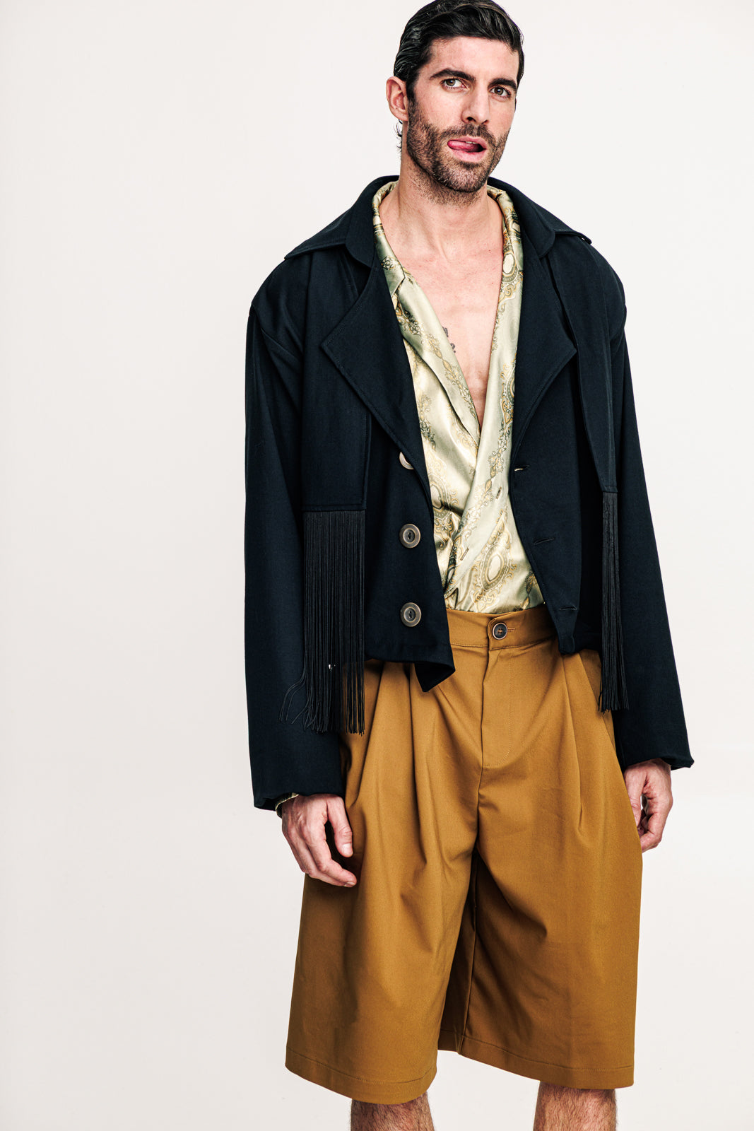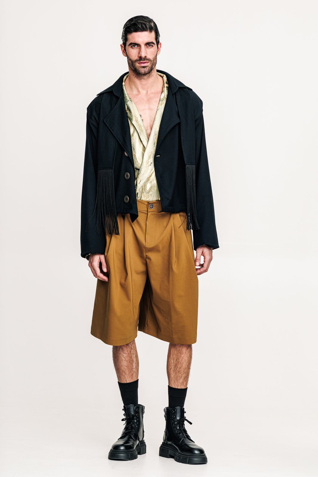 The Ulisse Jacket is designed in black, bringing a refined yet contemporary touch to outerwear. Its layered construction adds structure and dimension, while the clean lines and tailored cut ensure a modern silhouette. Versatile and effortless, it’s a piece that works just as well over casual looks as it does styled with more elevated outfits — a timeless essential with a modern edge.