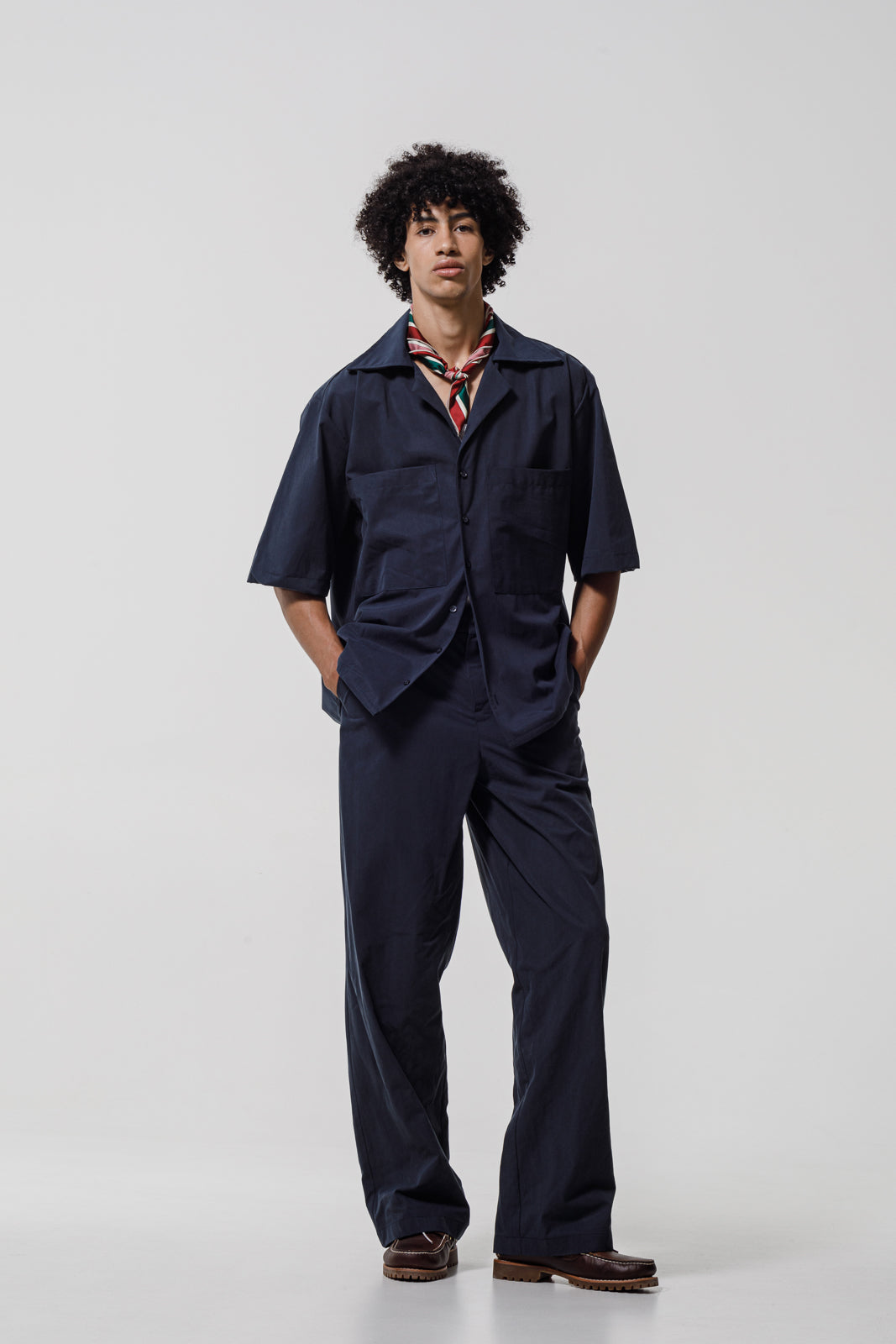 A refined Dark-Blue essential that channels aviation aesthetics into everyday elegance. Tailored for a relaxed yet structured silhouette, it seamlessly fuses formality with nonchalance, ideal for layering or sleek solo wear. This shirt brings precision and style to every pre‑fall edit.