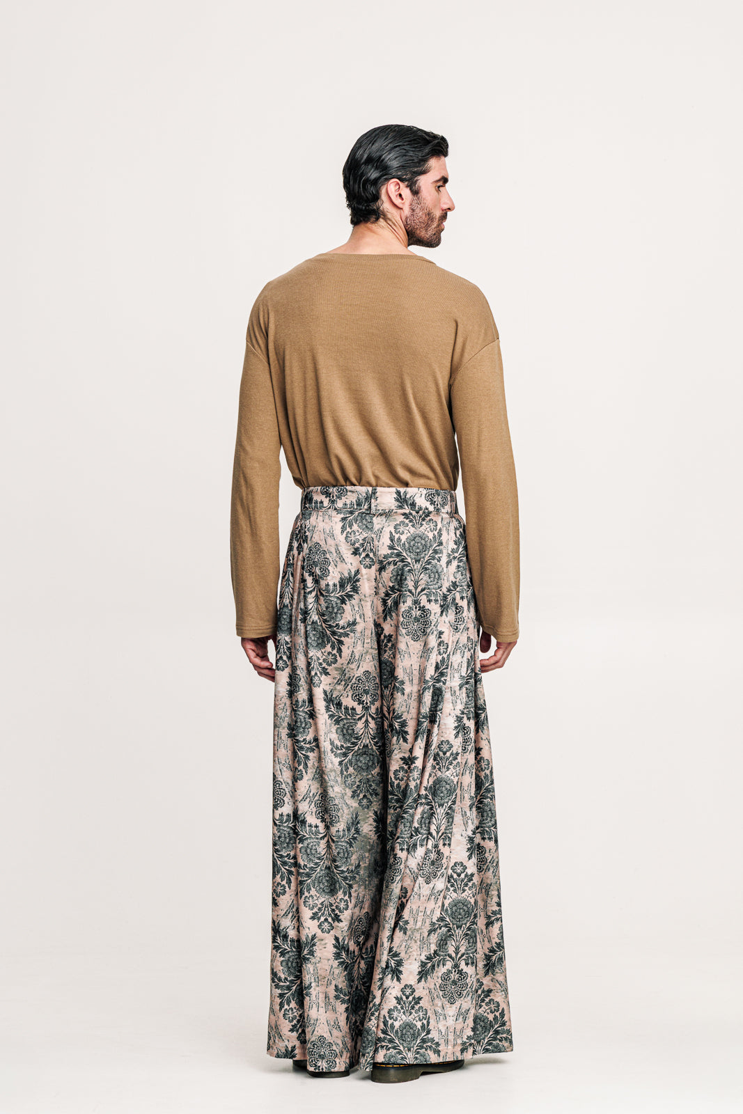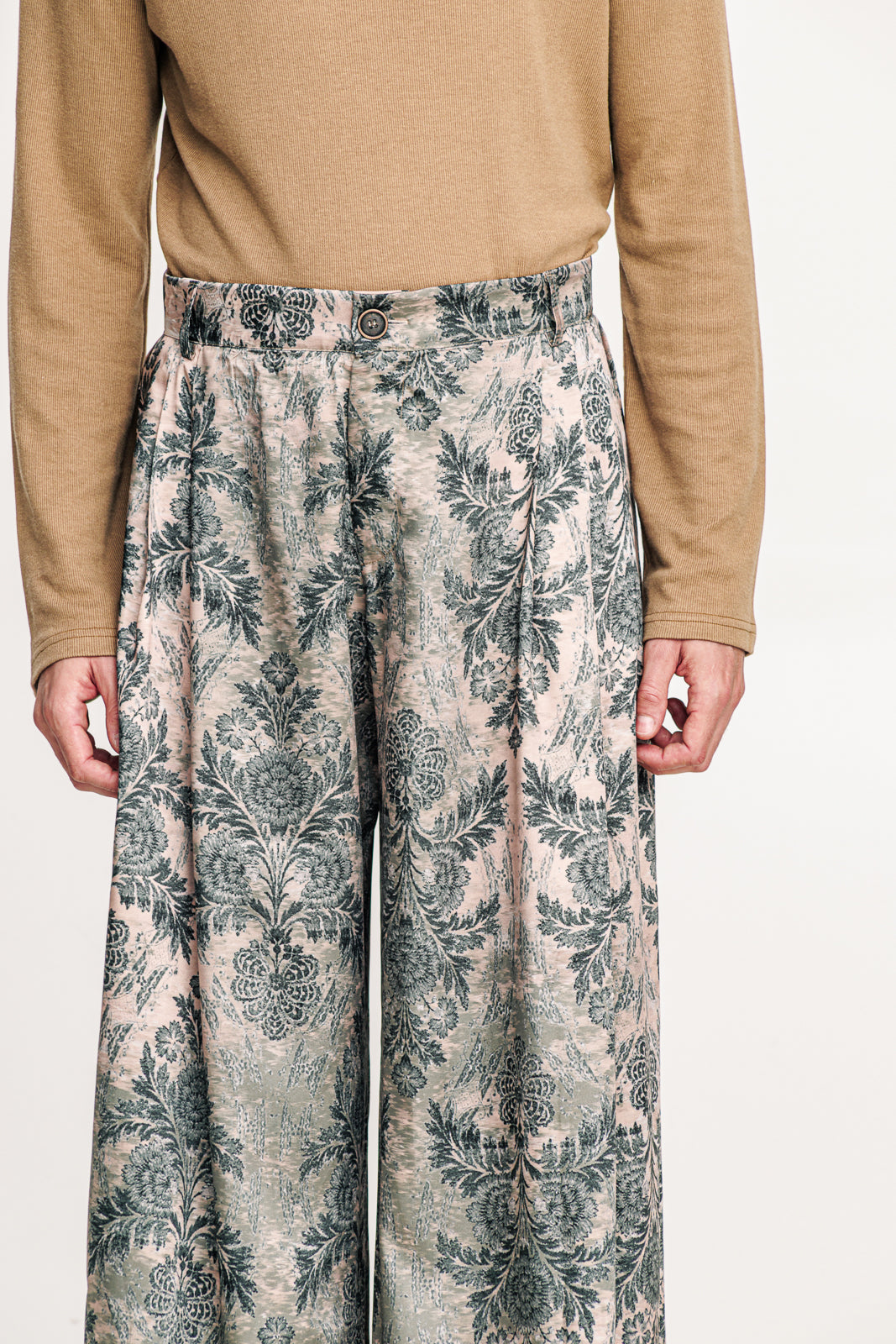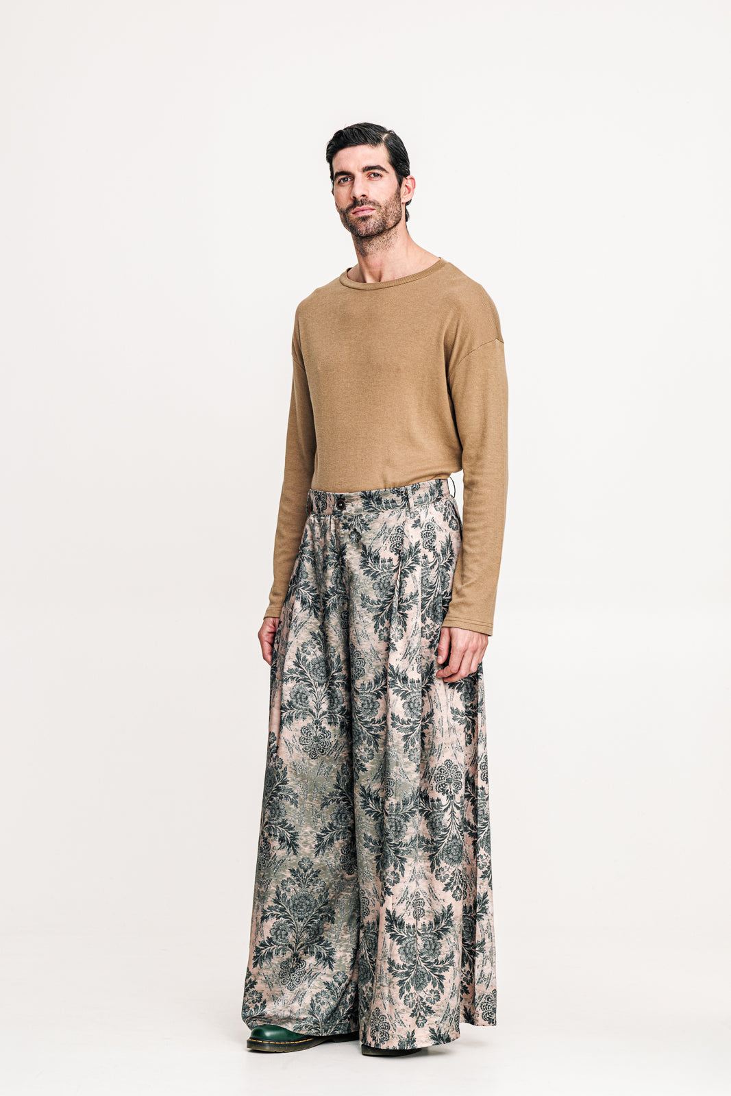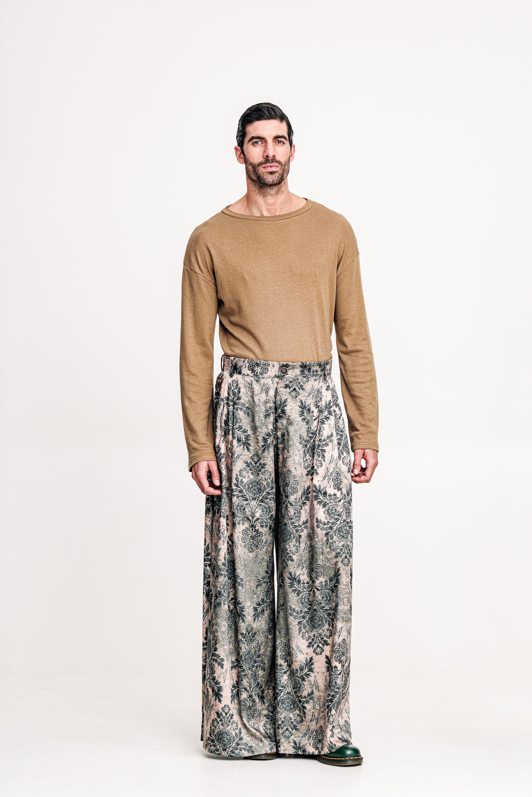 Printed pants in green tones with an oversized, flowing silhouette. Their bold pattern brings a distinctive edge to everyday styling. A contemporary piece that balances playful character with modern sophistication