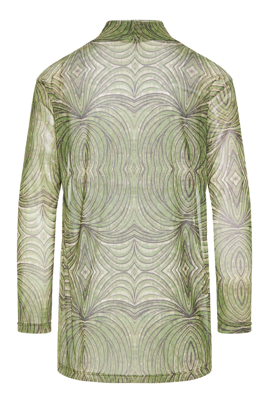 A printed blouse in green with a flowing, relaxed silhouette. Crafted from lightweight fabric, it offers ease and refined simplicity. The bold pattern adds a statement edge while remaining versatile in styling. A contemporary piece that blends playful character with modern elegance.