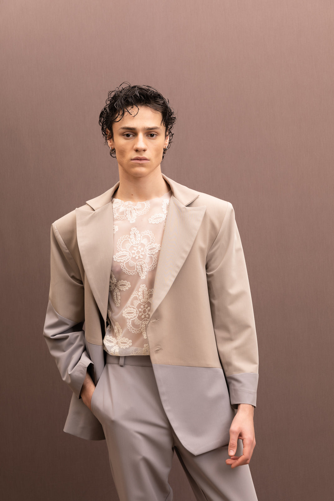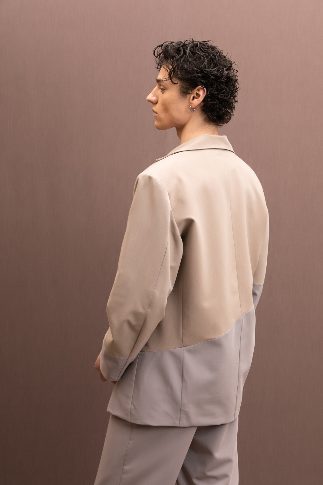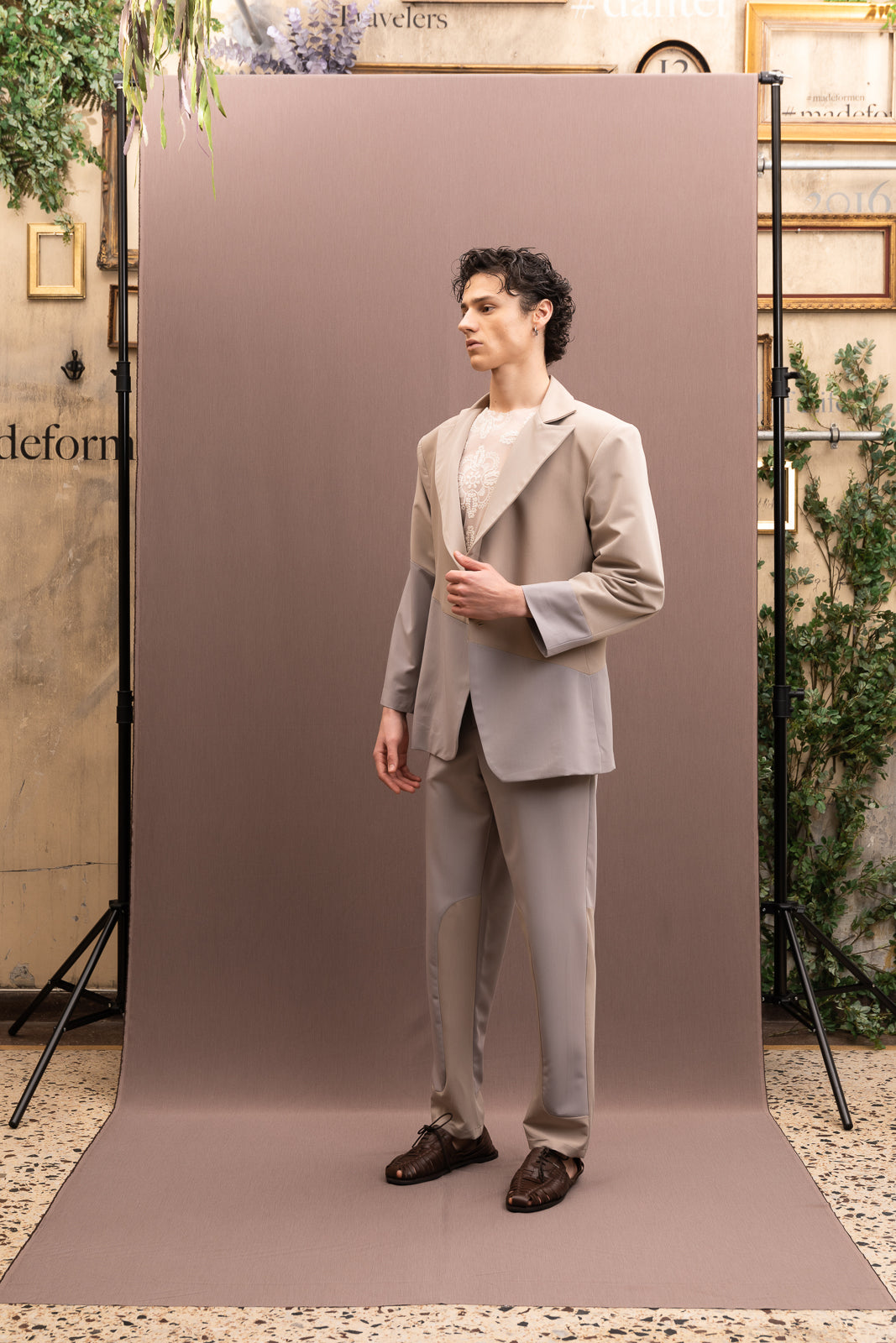 The ultimate blazer of the season is the Coda blazer. It outstands for its special design as divides two colors into one item. It has a slightly oversized fit, front side button close-up, long lapel, and mid-length. Suitable for any occasion. Match with its coordinated pants, Coda.