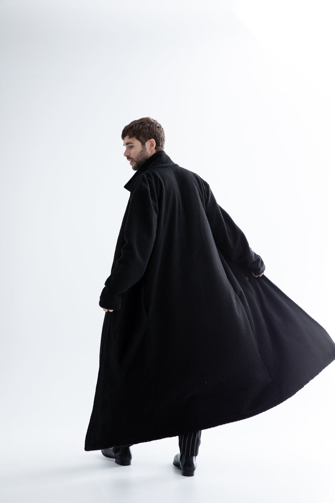 This coat is warm and cozy because it is made of wool fabric. Features oversized but classic fit, large lapel and three front  button closure . Layer over business attire for the office or for an alternative casual look. Extra belt for slimmer silhouette.