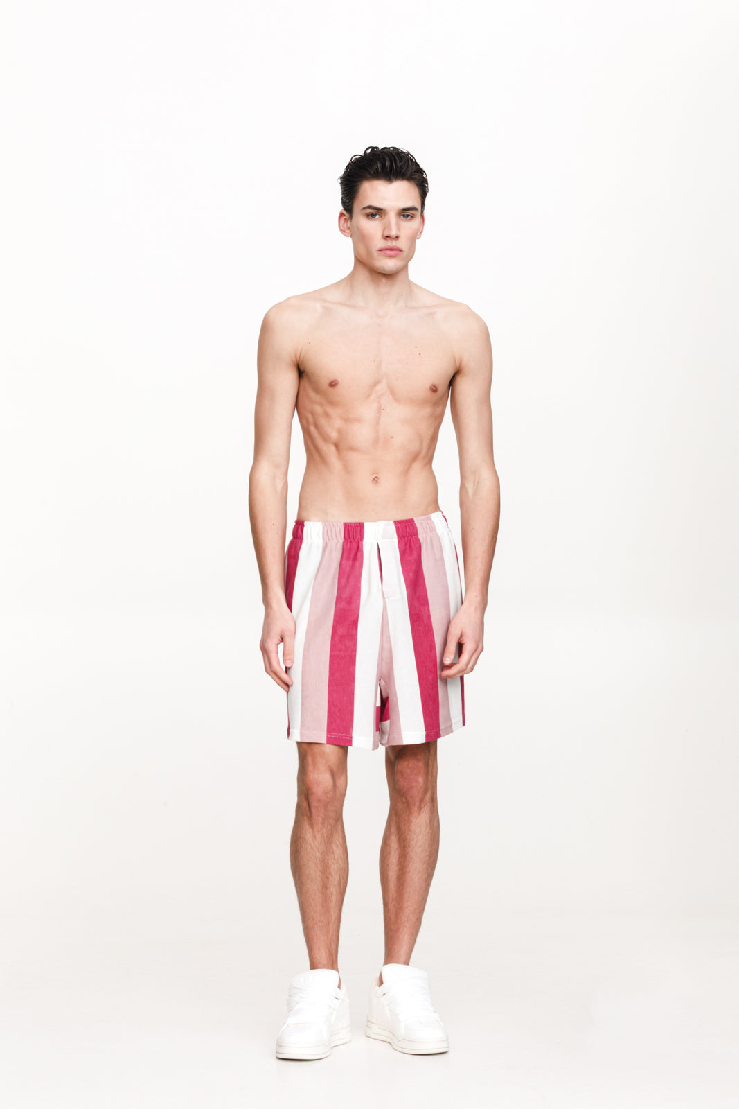 Striped shorts in vibrant pink tones with a relaxed, contemporary silhouette. The bold pattern adds character while maintaining refined simplicity. Lightweight and comfortable, they move effortlessly through everyday styling. A modern summer piece that blends expressive color with understated sophistication.