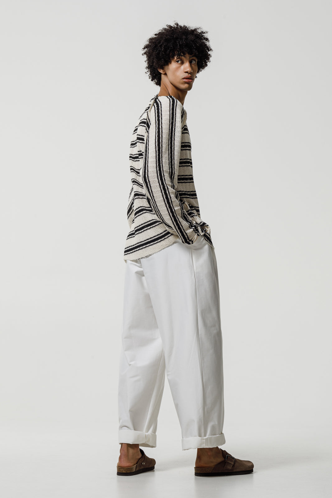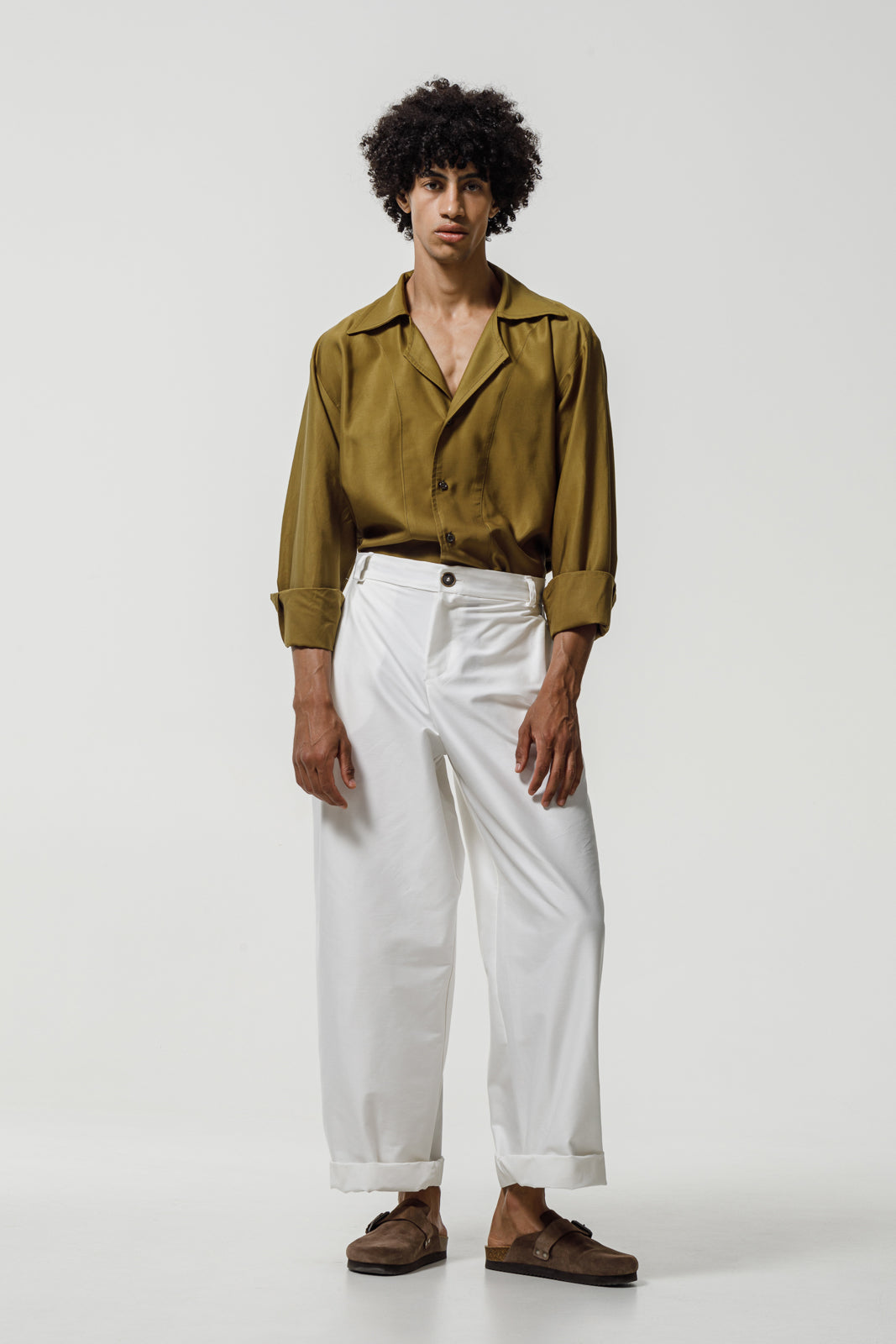 Glide through your pre-fall edits with these relaxed-fit white trousers, styled for both precision and ease. Made in Greece from 100 % cotton, they marry breezy comfort with a clean, elevated silhouette. Whether paired with layered jackets or statement shirts, they bring aerodynamic sophistication to any ensemble.